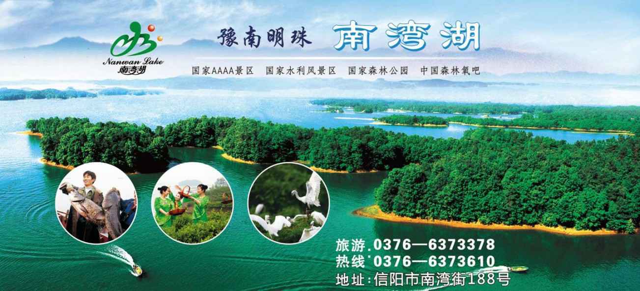 南湾湖风景区以南湾水库为中心,汇集森林、岛屿、山峦、湖泊、池潭、瀑布等诸多自然景观,总面积443平方公里,其中水域面积80平方公里,是杭州西湖的12倍。湖内水天相接,烟波浩淼,那里有鸟岛、猴岛、消夏岛等61座岛屿错落分布,景象各异。水库大坝雄峙两山之间,拦腰截断浉河,“浉河泛月”是著名的信阳八景之一。大坝东侧贤山连绵起伏,山南有贤山寺,贤隐洞等,“贤岭松风”亦为信阳八景之一。有“中州明珠”、“中原第一湖”的美称。